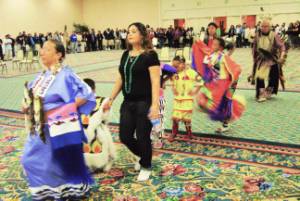 Visitors and friends attended the Monday evening cultural presentation. This is quite an accomplishment on a night that frequently has a different focus: Saint Patricks Day. This is a wellness conveyance and as such many of the attendees are committed to sober and drug free environments. The drums filled the large room with beautiful songs for the dancers to lift their hearts and move the feet to the beat of the of our Mother Earths heartbeat.